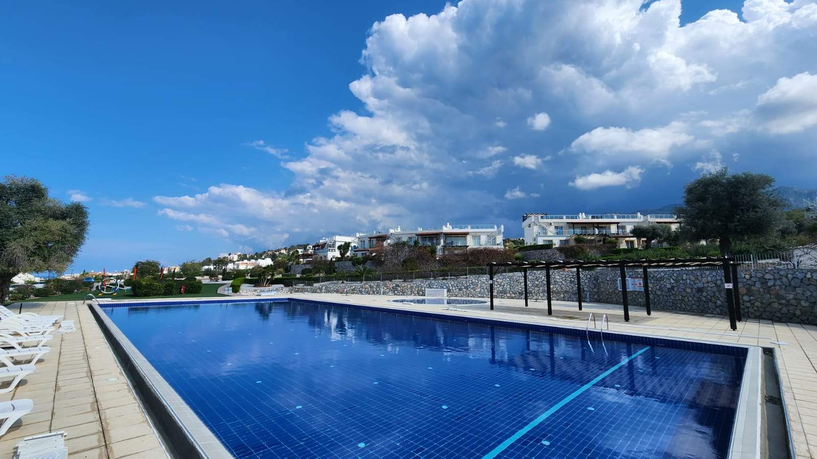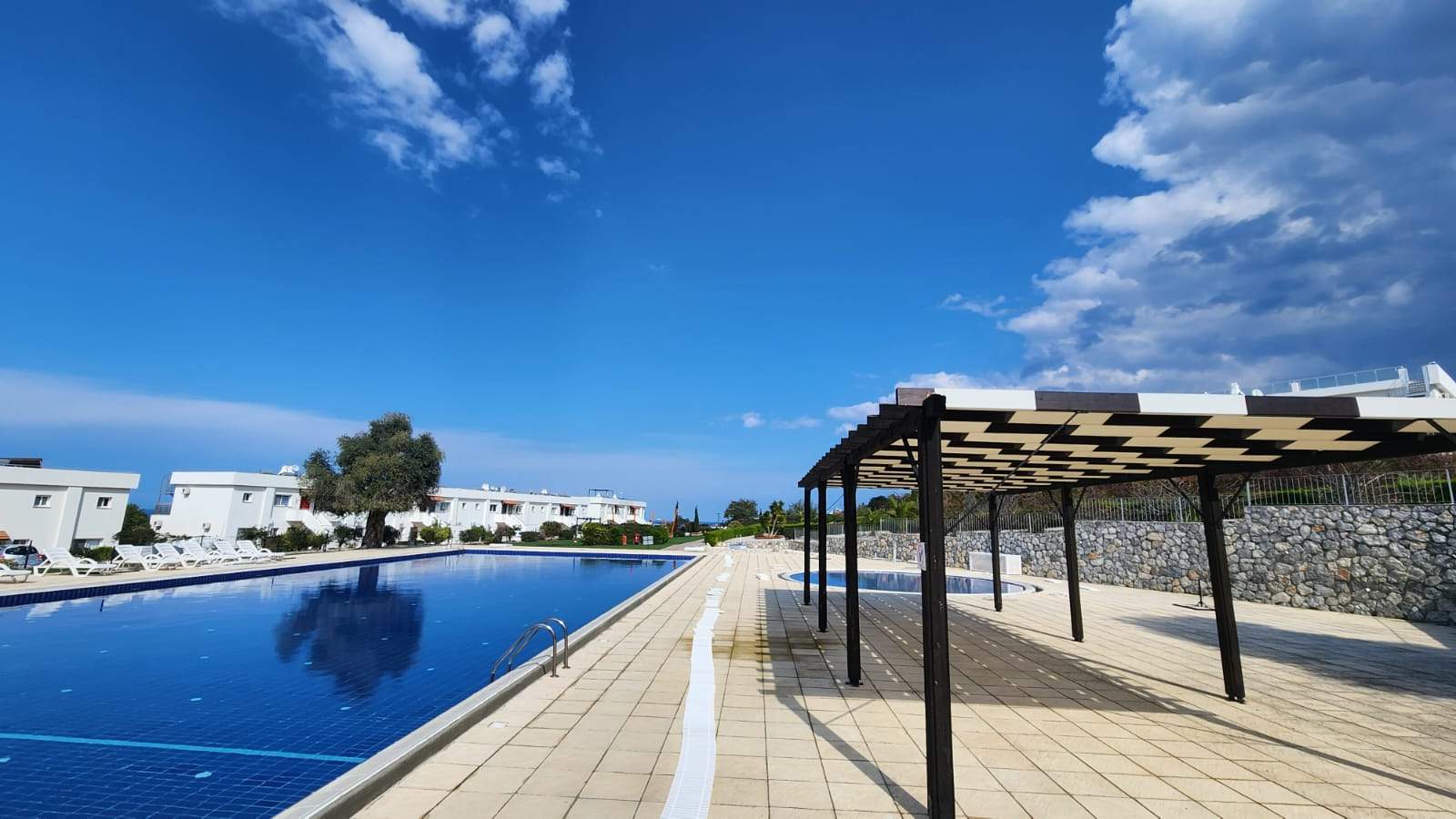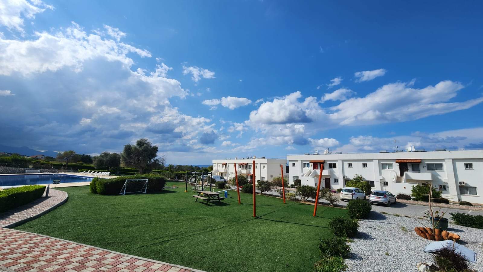 Girne Esentepe’deki bu daire, site yaşamının tüm avantajlarını sunmaktadır. Geniş bahçe ve teras alanı, yürüyüş yolları, havuz ve spor alanları ile hem rahat hem de güvenli bir yaşam sağlıyor.