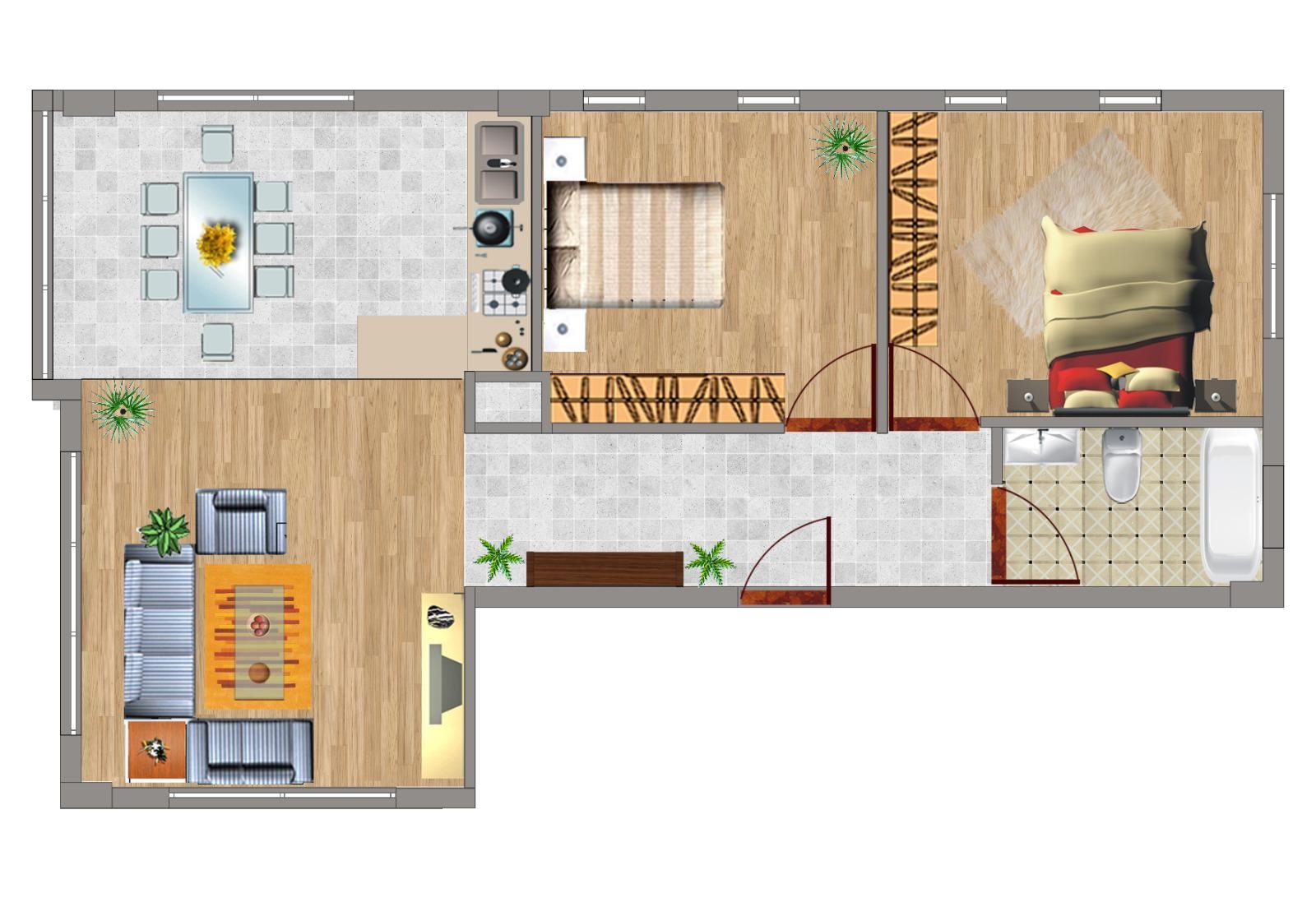• 2+1 kullanışlı daire planı
